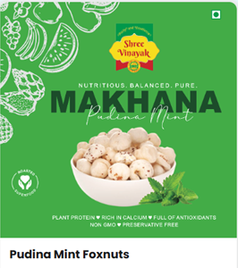 Enjoy a refreshing twist with Pudina Mint Foxnuts. Each premium foxnut is gently roasted and coated with a cool, aromatic blend of pudina, herbs, and select spices. The minty freshness pairs perfectly with the natural crunch, making it an ideal guilt-free snack for tea-time, travel, or anytime cravings. Light, tasty, and soothing—this flavor keeps you energized and refreshed with every bite.